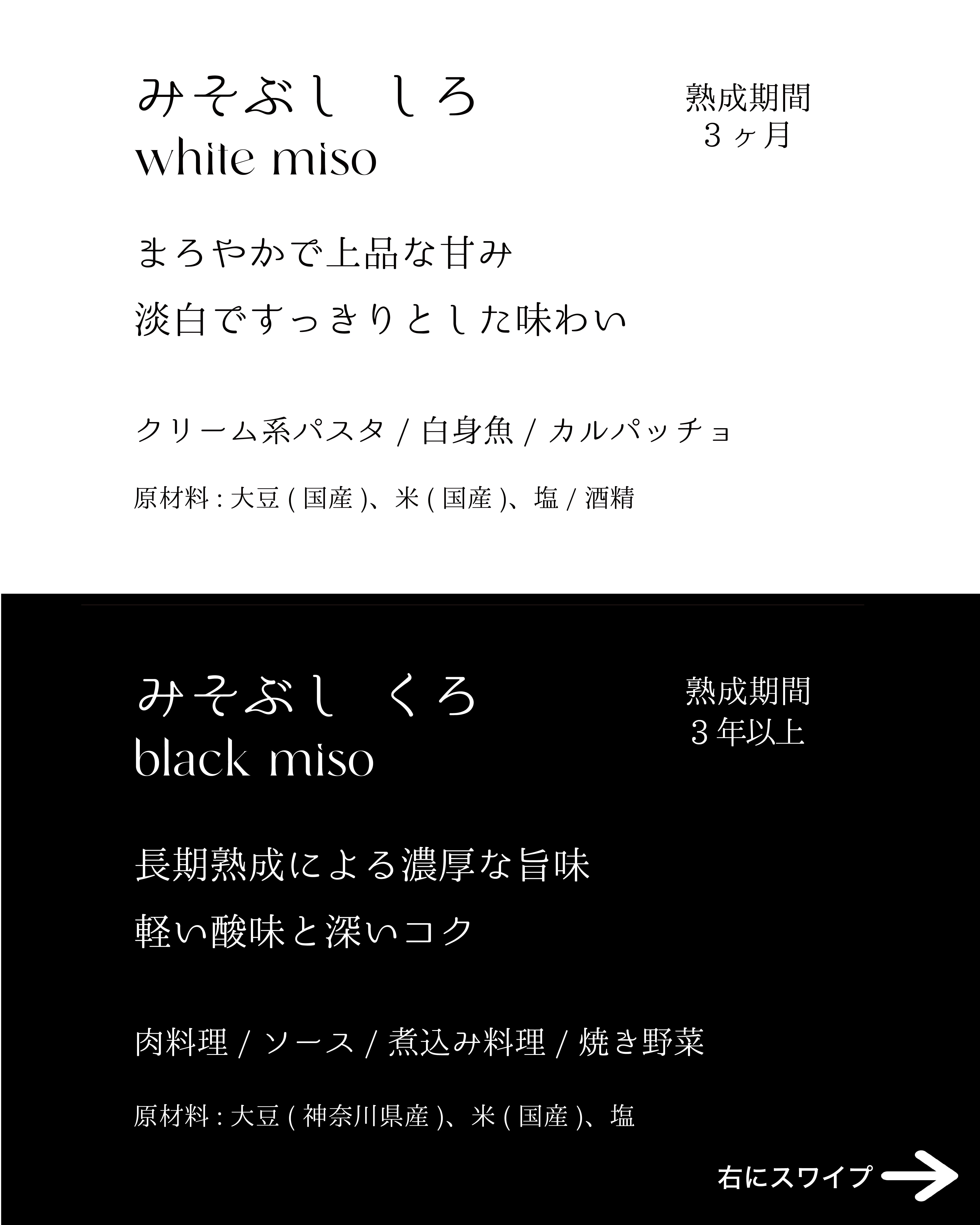 「みそぶし 白」は、上品でやわらかなコクが特長。 白ワインに合わせるような軽やかな料理と相性の良い味わいです。